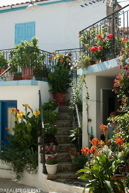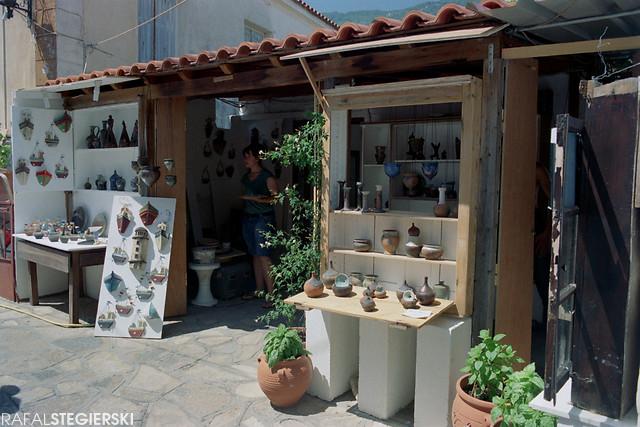 Do Manolates można dostać się zasadniczo na dwa sposoby. Ci, którzy brzydzą się pieszym wędrowaniem powinni skorzystać z wynajętego samochodu, lub skutera. Reszcie polecam przechadzkę. Wyruszyć należy z położonej nad samym morzem Agios Konstantinos i kierować się drogą prowadzącą do Valeontades tam konieczne będzie pożegnanie się z asfaltem i wejście na ścieżkę, która jest wyjątkowo kręta i całkowicie nieopisana. Mapa na niewiele się zda, lepiej zaopatrzyć się w GPSa. Jakąś pomocą może być zapis ścieżki, który załączam pod koniec. Klucząc przez winnice, gaje oliwne, po kamiennych schodkach, pylistych dróżkach, czy też przedzierając się przez krzaki cały czas uważając na skorpiony i węże (warto mieć wyższe buty) wspinamy się kilkaset metrów. Mijamy biało-niebieskie (a jakże!) kapliczki, porzucony sprzęt rolniczy, krzywe chatki, a nawet kaktusy. Pierwsza nagroda, która nas czeka to wodopój na przeciwko dziwacznej konstrukcji, która okazuje się pozostałościami publicznej toalety. Stąd jeszcze nie widać celu podróży, ale jest już blisko.Na samą wioskę składa się kilkanaście, może trzydzieści, domów, trzy knajpy i pomnik bohaterów z kilku wojen (w sumie kilka nazwisk). Co jednak najbardziej zaskakujące to fakt, że jest też przedszkole, poczta, lekarz i policjant. Architektonicznie cudny chaos. Wszystko ciasno, wielopoziomowo upakowane. Wchodzimy w labirynt wąziutkich, niejednokrotnie zastawionych donicami z kwiatami, ławeczkami i towarami, uliczek pnących się ku górze prowadzi do rezerwuarów wody pitnej. Miejsce to upodobali sobie artyści i rzemieślnicy, do których warsztatów można zajrzeć, podejrzeć co robią i zamienić kilka słów (to ostatnie wymaga, w większej części przypadków, znajomości greckiego). Czas płynie tu leniwie z dala od zgiełku wielkich miast i wszystko rozgrywa się w swoim naturalnym tempie. Jeżeli ktoś chciałby pobyć tam dłużej to nawet da się jakieś pokoje wynająć, jeżeli udał się na chwilę to można coś przekąsić i napić się kawy po grecku (fuj!) lub piwa. Wejść interakcję z miejscowymi, którzy są wyjątkowo przyjaźnie nastawieni. Potem małe zakupy. Nabyć można lokalną oliwę i (też lokalne) produkty pochodne, w tym mydło, rękodzieło oraz ceramikę, ale tu trzeba uważać, bo obok dzieł powstałych w tutejszych warsztatach jest również masówka, którą można kupić na Place często za mniejsze pieniądze.